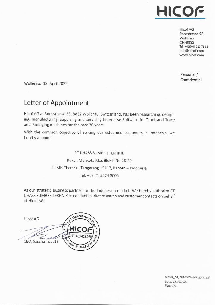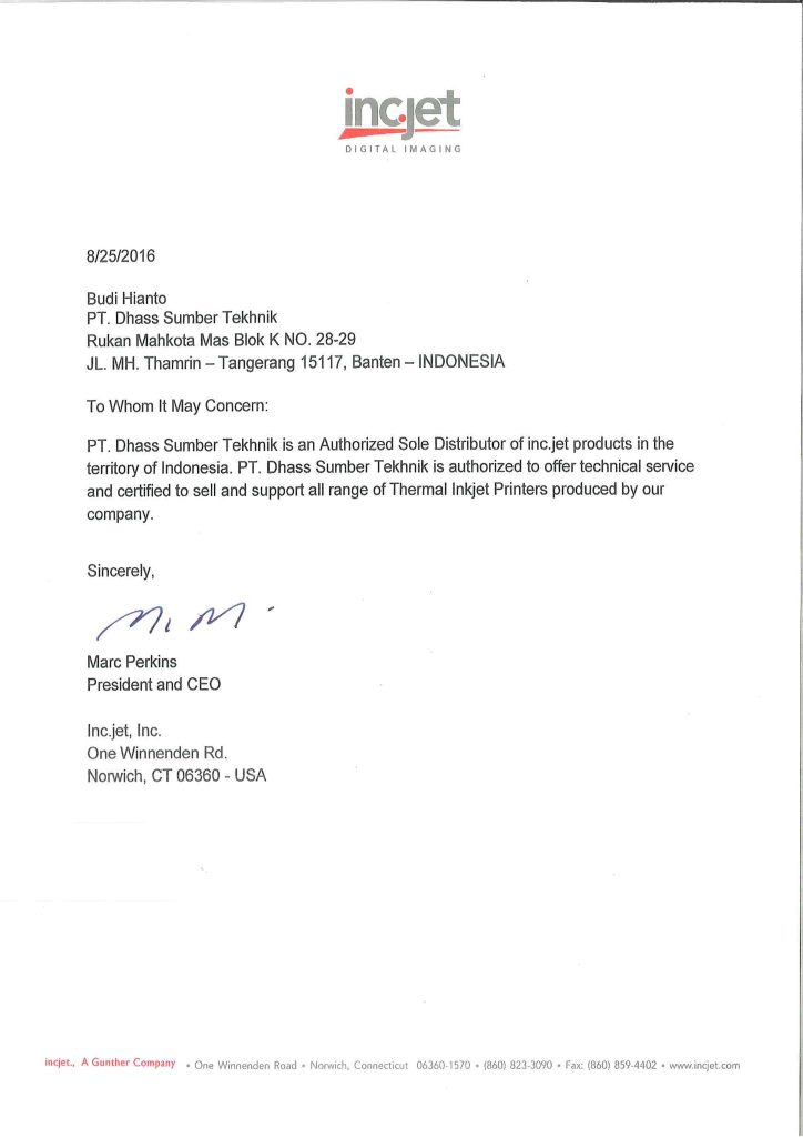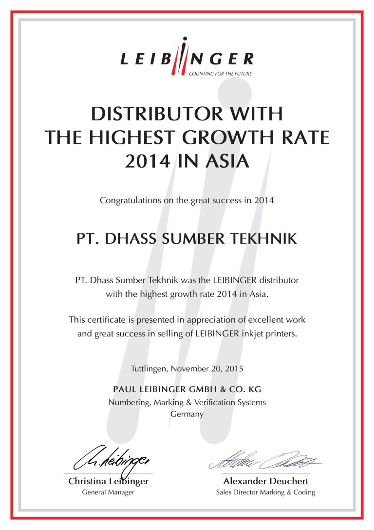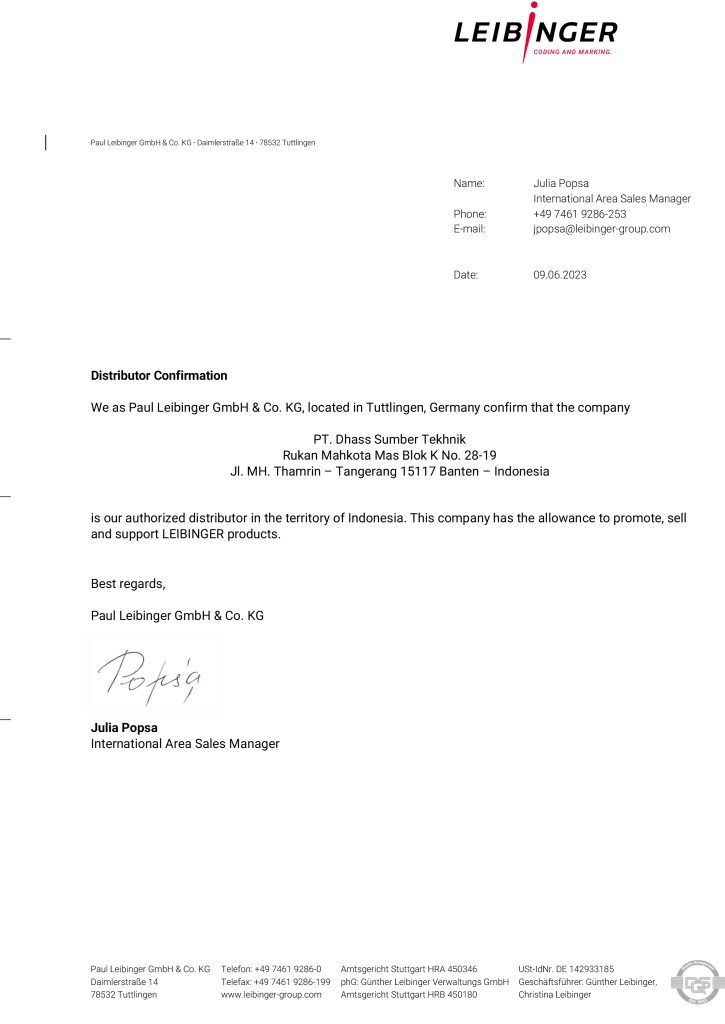 Established in year 2005, PT. Dhass Sumber Tekhnik began its trading company by distributing and promoting Leibinger Ink Jet Printer (Germany) for coding and marking. Thereafter, the company has grown to become one of the leading coding and marking supplier in Indonesia.