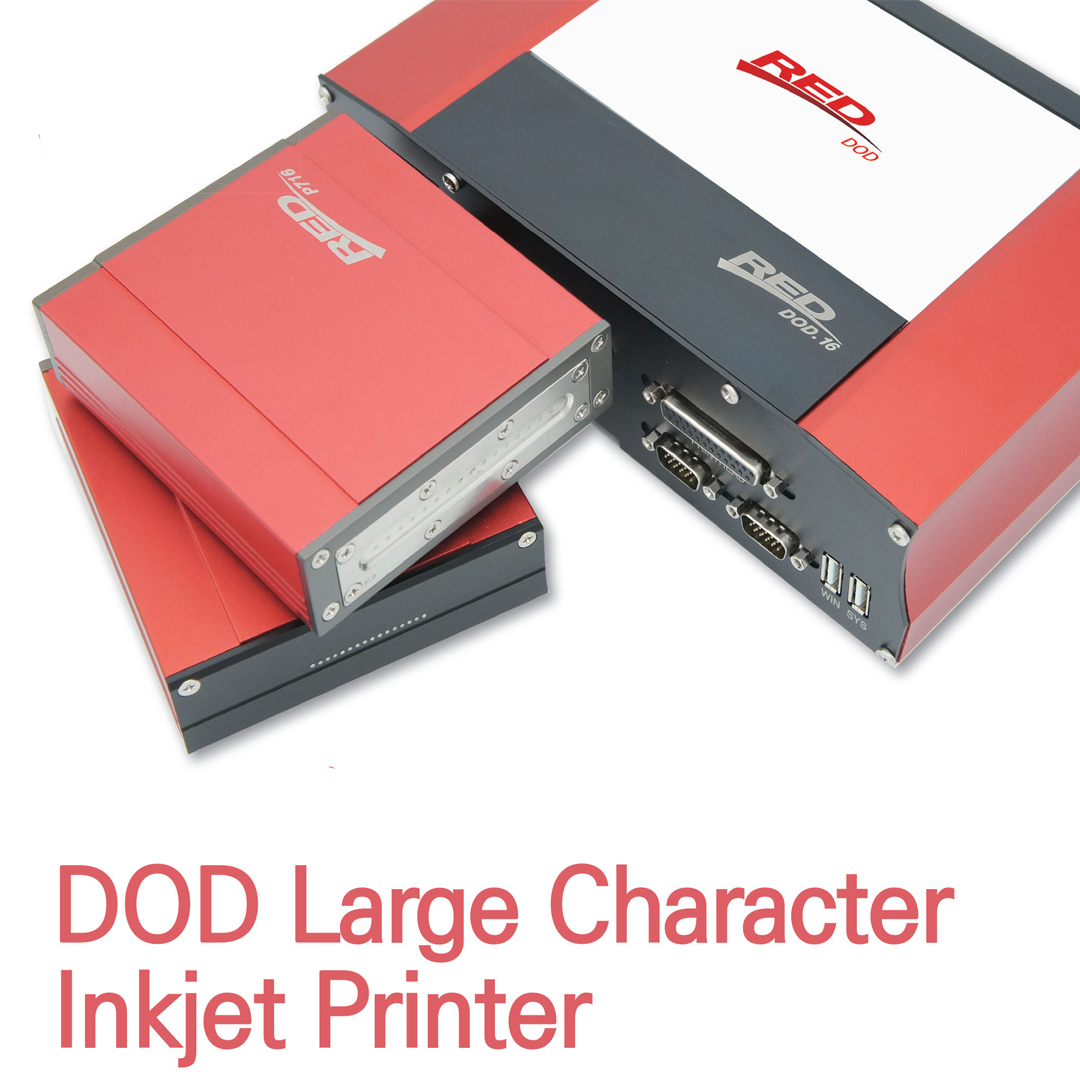 RED DOD Large Character Inkjet Marking System has been focused on robust structure in any environment. RED DOD Printhead is designed to install and maintain easily with the most compact size. The solenoid valve inside the printhead only weighs 3gram and the size is 4mm. Its structure make RED DOD Printhead very unique and one of the most efficient device in the industry. You could get flexible, find marking with the fastest print speed, max.175m/min. NFC Tag allows users to refill the correct ink so it is a key function to maximize product performance and uptime and extend product life by ensuring compatibility between product and ink.RED DOD provides a Window based graphic user interface to help users operate the system without trouble. Software menu is available in a variety of languages with 7” color touch screen.