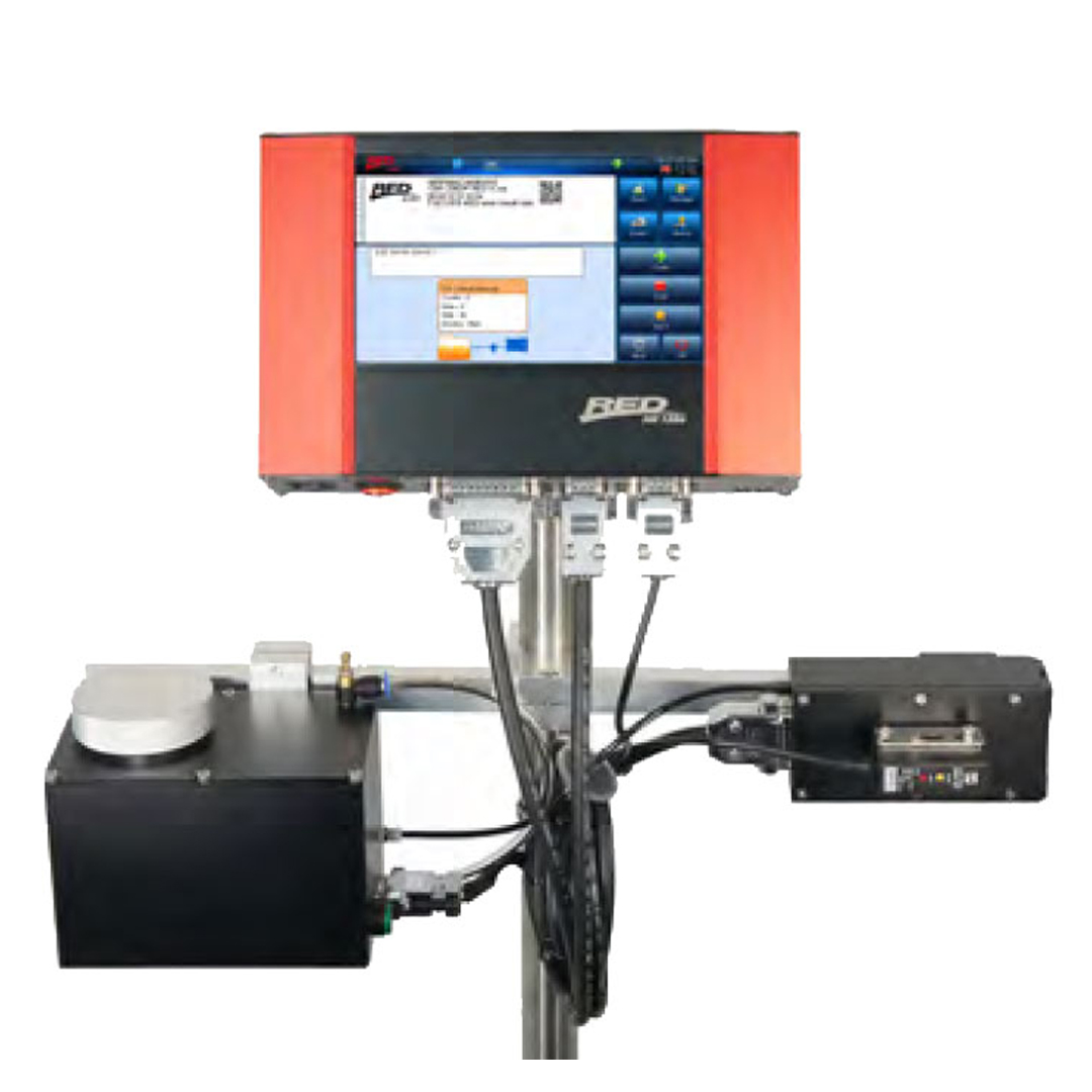 Introducing the new Inter Mac’s High resolution Inkjet Marking System, RED HIRES. This model is designed with XaarTM Printhead that can print 200DPI. The printhead has either 128 or 500 nozzles, and it can print lot number or barcode in fast speed. For continuous operating with minimum interruption, RED HIRES is built with a 500ml large ink reservoir so it can be run without temporary stop and changing cartridge for a long time. It also has a printhead purge button for convenient system maintenance. New NFC function allows users to refill the correct ink in order to maximize product performance and uptime extend product life by ensuring compatibility between product and ink. RED HIRES provides a window based graphic user interface to help users operate the system without trouble. Software menu is available in a variety of languages with 7” color touch screen.
