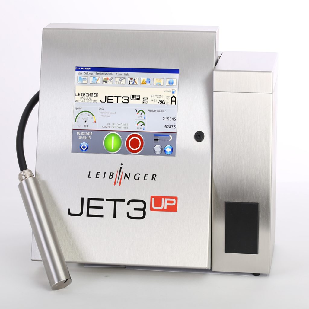 - Due to the many, multifunctional interfaces on the back of the industrial inkjet printer, the LEIBINGER JET3up can be easily linked to existing machines or incorporated into a higher-level control system.